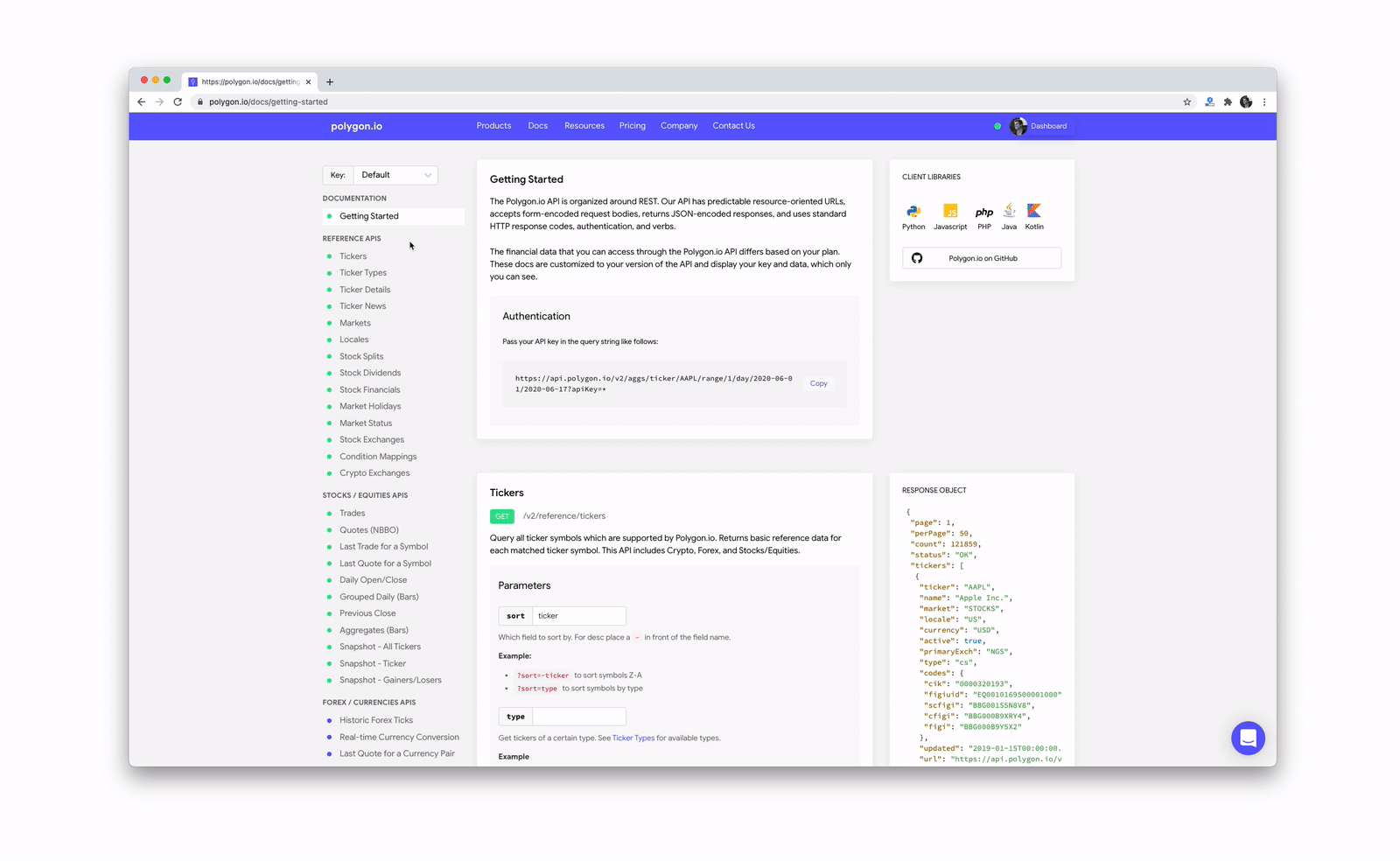 Visit the new documentation at https://polygon.io/docs/