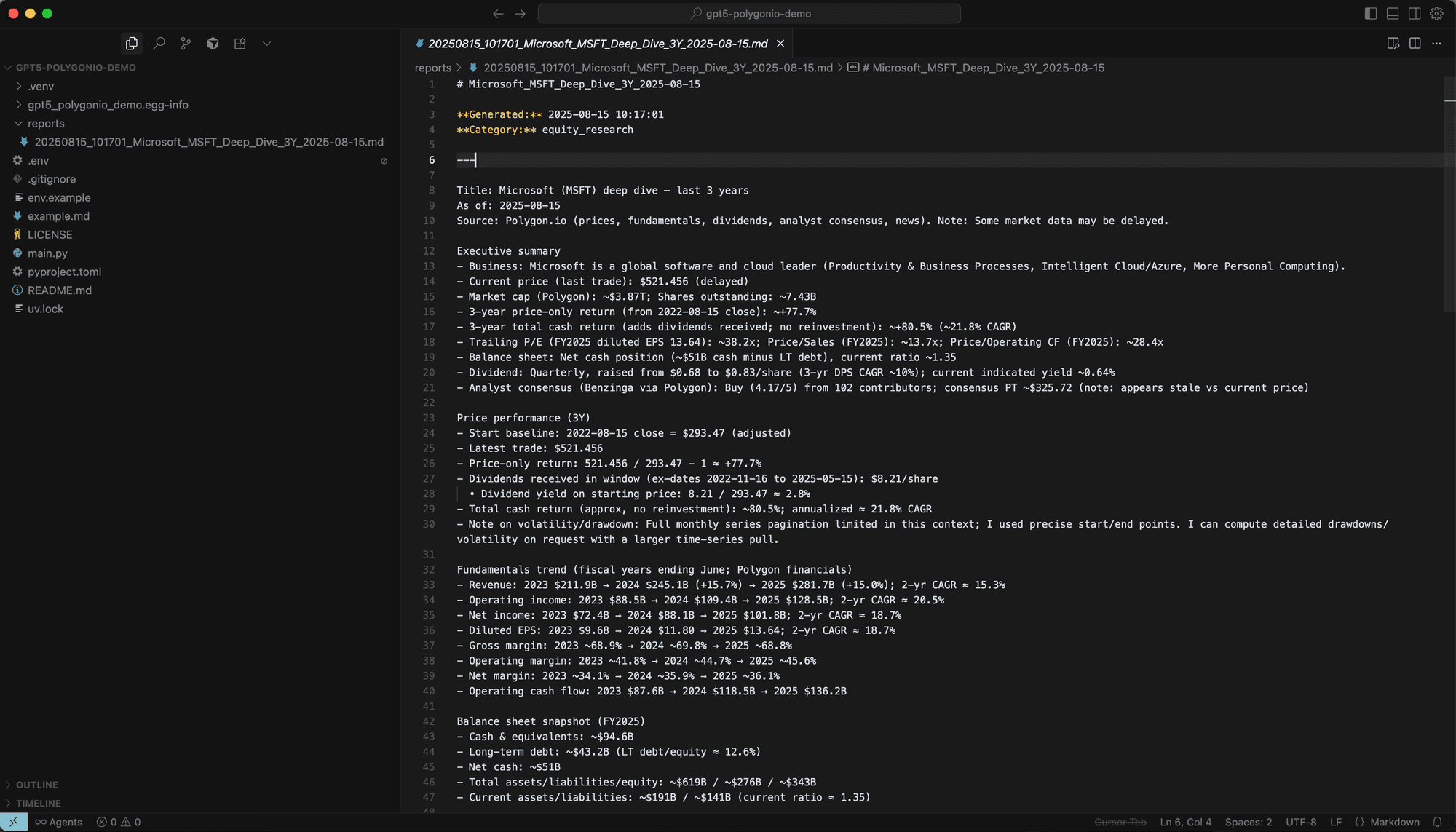 And, since I asked it to save a report in my prompt - you'll notice a new markdown file in the reports folder with all of the information from the investigation. You can do this with any prompt you provide. It will also remember context as you send in more messages.