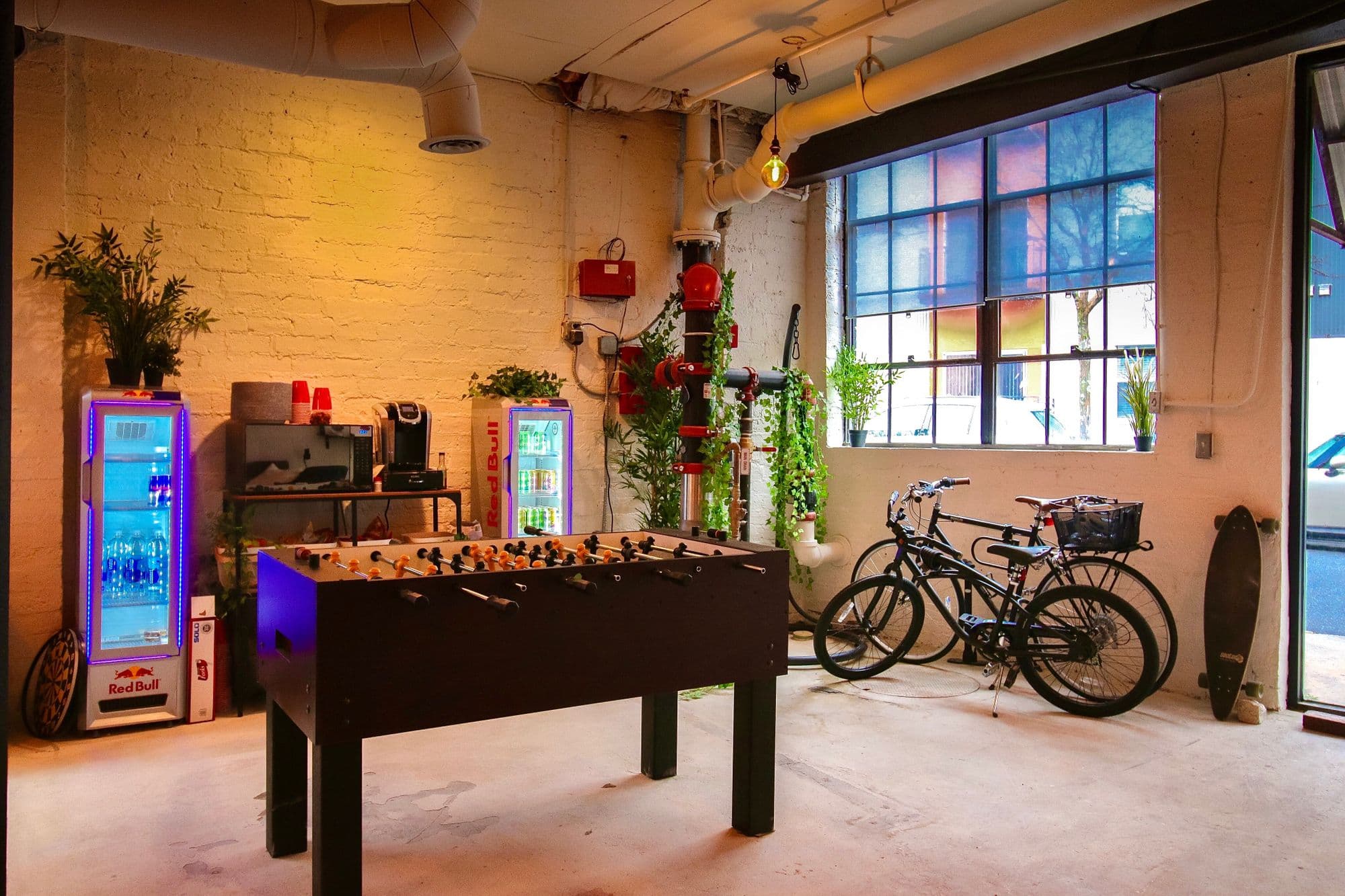 We wanted the office to be as open as possible, but we had to wait for the city of Atlanta to approve the demolition of the dividing walls between the front and back of the space. Until then, we set up shop up front and began decorating with IKEA furniture and a few fake plants. We ended up finding a great deal on craigslist for a couple RedBull fridges, so we bought them. What startup doesn’t need a couple of RedBull fridges, right?