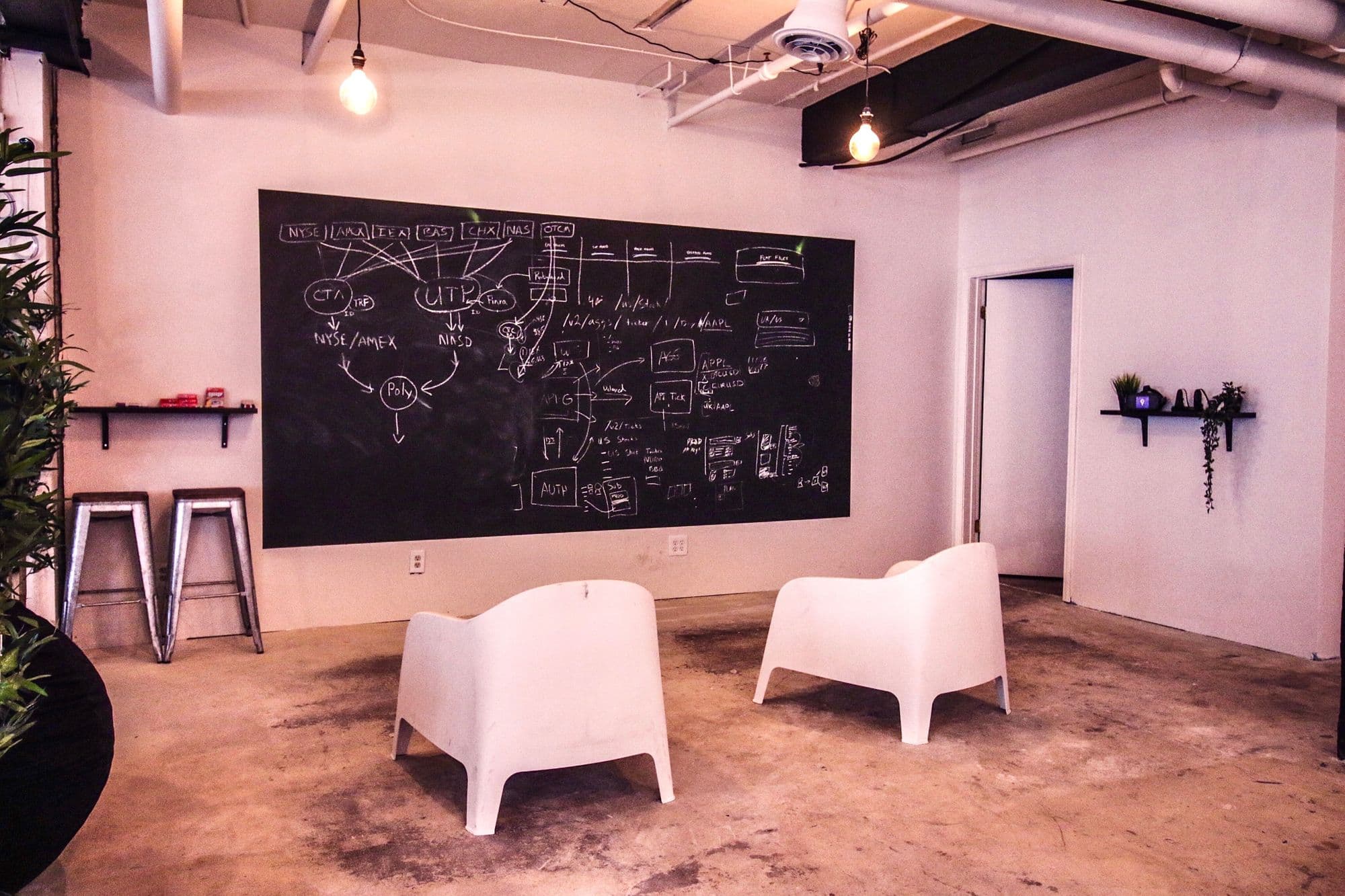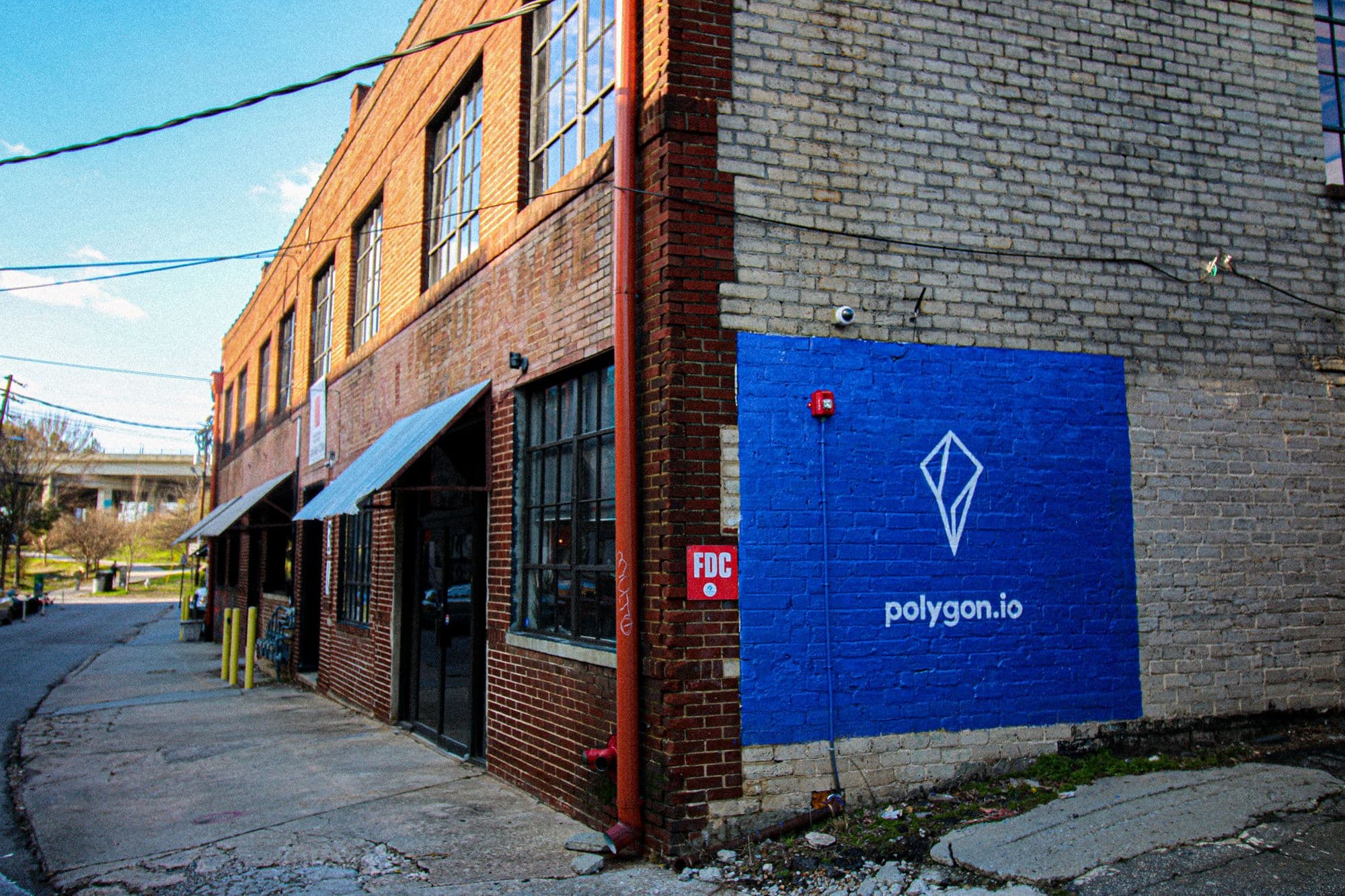 Fast forward to move in day November, 1. The place needed a ton of work. The blue walls were the first to go. We went with a nice white, and we did it all ourselves over the course of a few weekends. Software developers by day, semi-professional painters by night. After many hours and paint-stained clothes, it was looking pretty good. We even got some signage up on the wall outside - a large purple square with our logo and Polygon.io underneath.
